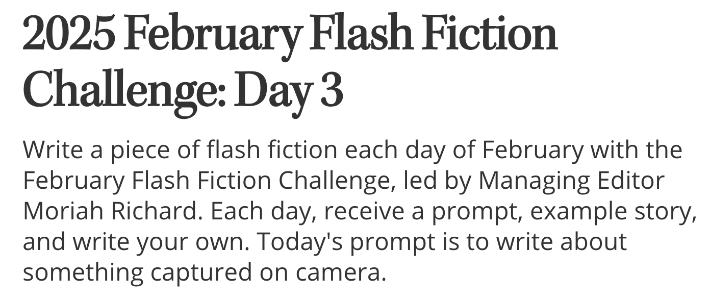 Before we get into today’s story I just want to say… I’m not apologizing for missing yesterday, just letting you know that while I fully remembered and even put down a rough idea based on the prompt, I was too busy to get around to it.